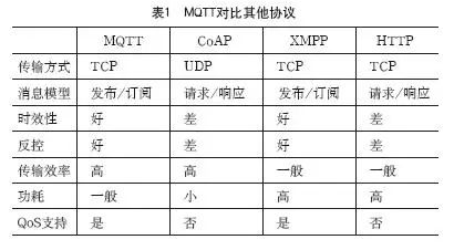 在物聯網眾多協議中,MQTT對比(bǐ)其(qí)他協議,如表1所示。